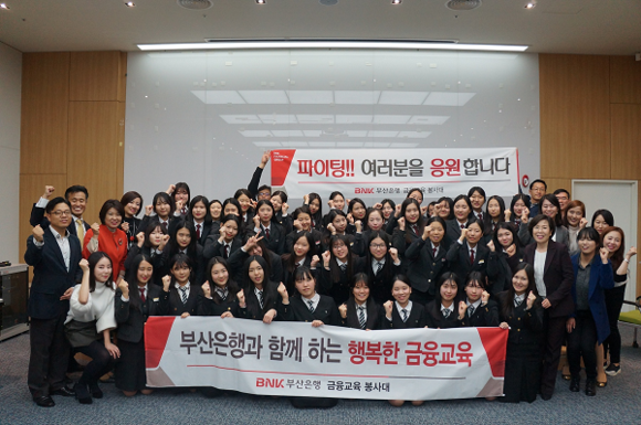 이번 제1기 수료 대상자는 부산여상과 부산진여상 학생 45명으로 이들은 지난 9월부터 11월까지 매주 토요일 부산은행 금융교육 봉사팀이 진행한 ▲금융·경제교육 ▲비즈니스 매너 교육과 부산국제금융센터(BIFC)내 주요 금융기관 투어 등에 참여했다.