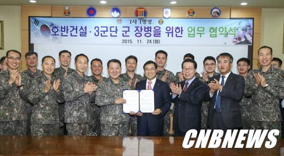 육군 3군단과 호반건설이 24일 군단 대회의실에서 1사 1병영 협약을 체결했다.