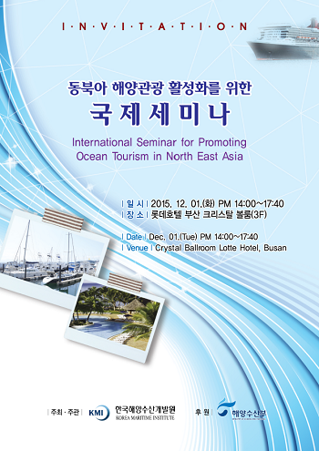 한국해양수산개발원(KMI, 원장 김성귀)이 주최하는 '동북아 해양관광 활성화를 위한 국제세미나'가 12월 1일 오후 2시 롯데호텔부산에서 한·중·일 동시통역으로 개최된다.