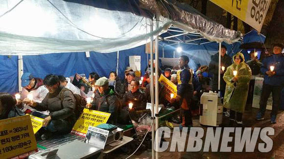 지난 15일부터 계속돼온 촛불문화제가 이날 밤에도 이어지고 있었다. 백씨의 터전인 전남 보성군 옹치면에서 상경한 주민들과 농민회 회원 등 50여명이 촛불을 밝히고 있었다.