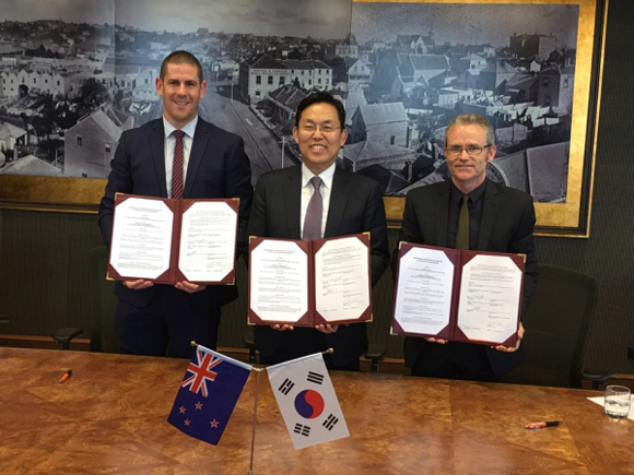 부산창조경제혁신센터(센터장 조홍근)는 26일 오후 4시(현지시간) 뉴질랜드 오클랜드에서 오클랜드 관광경제개발청, 스크린 오클랜드(Screen Auckland), 부산영상위원회, 롯데시네마/엔터테인먼트, 부산창조경제혁신센터간의 '영화영상 협력' MOU를 체결했다.
