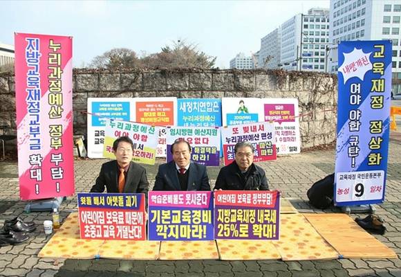 이재정 경기도교육감은 30일 중국 출장을 취소한 채 전국 시도교육감협의회 장휘국 광주시교육감, 조희연 서울시교육감과 함께 국회를 찾아 "누리과정 예산은 정부가 반드시 책임져야 할 몫이며 누리과정 예산을 떠넘기는 정부의 행태에 대해 더 이상 간과하지 않을 것"이라고 성토 했다.