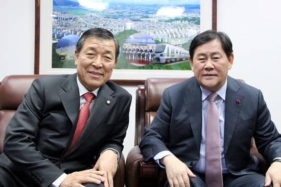 ▲황진하 국회의원이 최경환 부총리를 직접만나 GTX파주연장 관련 요청을 했다.(사진= 파주시)