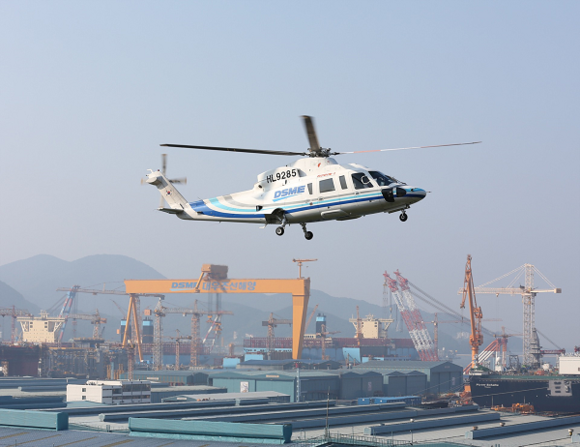 ▲대우조선해양이 지난달 30일 매각한 헬기 시코스키 비행 모습. (사진제공=대우조선해양)