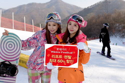 롯데카드는 3일 겨울시즌을 맞이해 전국 유명스키장에서 리프트·렌탈 등을 최대 60% 할인해 주는 ‘롯데카드 WinterFestival’을 실시한다고 밝혔다.