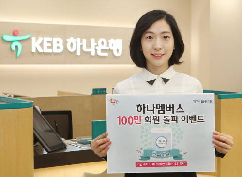 이번 100만 회원 돌파 기념 이벤트 중 ‘Thank You 1000 Money’ 이벤트는 이달 말까지 선착순으로 50만명의 신규 가입 고객에게 하나머니(1000머니)를 제공한다.