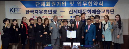 한국자유총연맹은 4일 서울 중구 장충동 소재 자유총연맹 본부 회의실에서 신세대문화예술교류단과 ‘단체회원 가입 및 업무협약(MOU) 체결식’을 가졌다고 밝혔다.