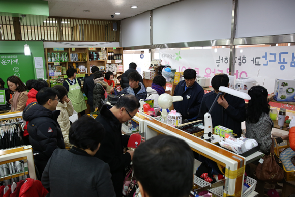 국민건강보험공단 부산지역본부(본부장 조진호) 건이강이봉사단은 5일 부산도시철도 1호선 명륜역 내 아름다운 가게에서 '아름다운 나눔을 위한 바자회' 행사를 가졌다.