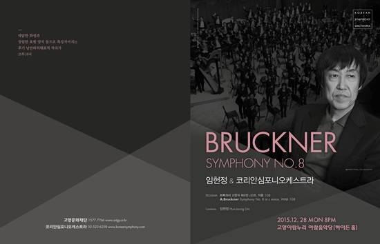 코리안심포니오케스트라는 2015년 마지막 월요일인 12월 28일 저녁 8시 고양시 아람누리 아람음악당에서 브루크너(Anton Bruckner, 1824-1896)의 대표곡 '교향곡 8번' 공연을 한다고 밝혔다. 이번 공연은 고양문화재단과 공동주최다.
