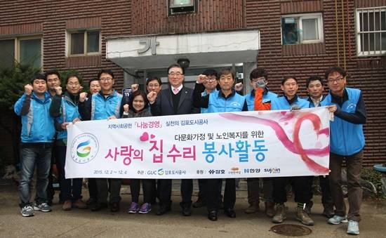 김포도시공사는 지난 2일 (주)삼호와 (주)한양의 협찬으로 '사랑의 집수리' 봉사활동을 진행해 공사의 기술직 직원들이 다문화가족의 집을 리모델링했다고 밝혔다.