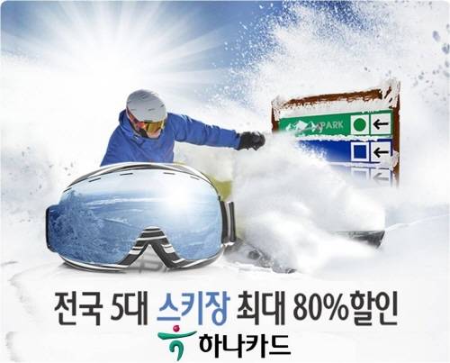 하나카드는 스키시즌을 맞이해 리프트권·장비렌탈·부대시설 등 할인혜택을 제공하는 ‘전국 5대 스키장 최대 80% 할인이벤트’를 진행한다고 밝혔다.