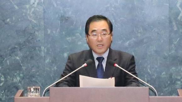 ▲성남시의회 윤창근 의원이 위약금에 문제가 있다며 시정질문을 하고 있다 (사진=성남시의회)