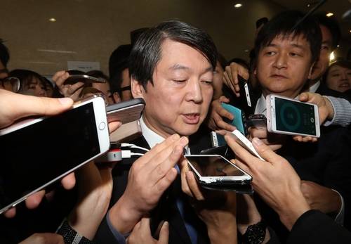 ▲안철수 새정치민주연합 전 공동대표가 13일 오전 국회 정론관에서 기자회견을 열고 새정치민주연합 탈당을 선언한 직후 기자들의 질문을 받고 있다.(사진=연합뉴스)