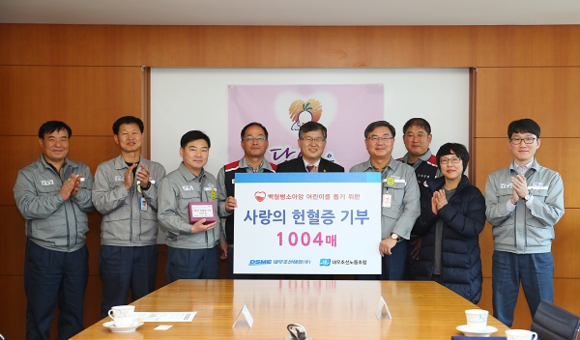대우조선해양, 백혈병소아암협회에 '사랑의 헌혈증' 1004매 기부