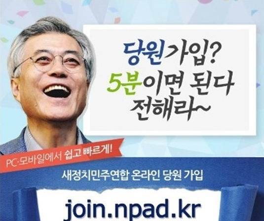 ▲오랜 친구가 떠났다면 그 자리를 잠시 비워두는 게 인지상정이다. 떠나기 무섭게 리모델링에 나섰다. 반성·희생은 없다. 무엇이 그리 기쁜가. (사진=새정치민주연합 당원모집 포스터)