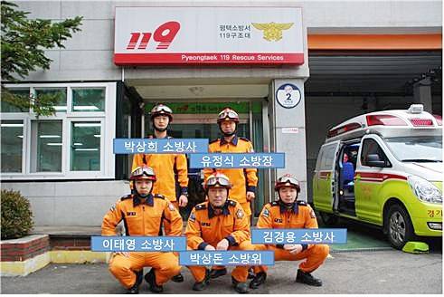 이들 소방관 5명은 서해대교 주탑 화재진압 도중 순직한 고 이병곤 소방령이 근무했던 평택소방서 소속 119구조대원이다. 화재 당시 고 이 소방령이 케이블에 맞아 당진병원으로 이송된 후 현장에서 대기하다 화재진압에 나서게 됐다.