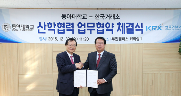 동아대학교(총장 권오창)와 한국거래소(이사장 최경수)가 30일 오전 11시 동아대 부민캠퍼스 국제관 회의실에서 업무협약을 체결했다.