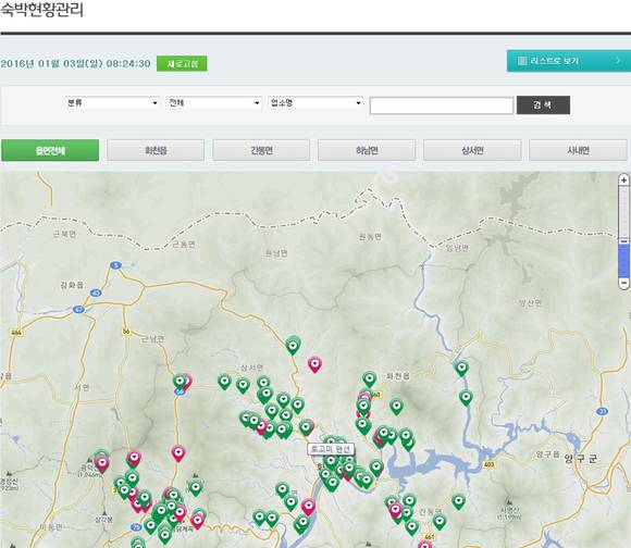 ▲실시간 숙박업소모니터링시스템 화면(사진=화천군청 제공)