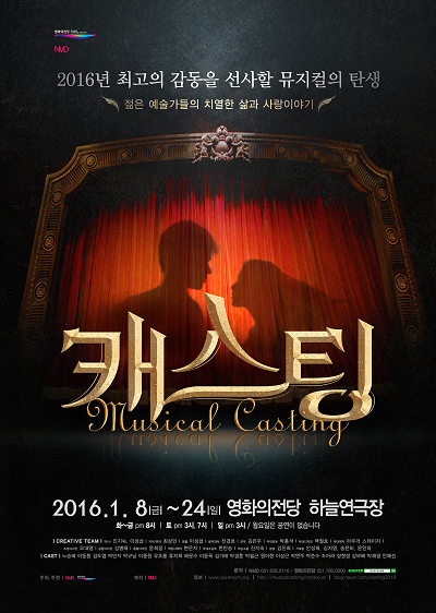 부산 최고의 제작팀이 만든 대형 창작뮤지컬 '캐스팅'이 오는 1월 8일부터 24일까지 영화의전당 하늘연극장 무대에 오른다.