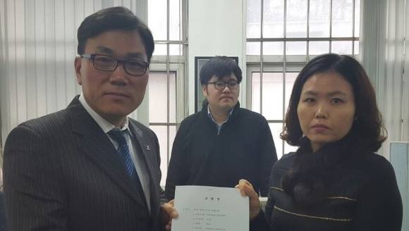 ▲경기도 광주시 공무원직장협의회장이 악의적인 민원인에 대한 고발장을 접수하는 모습. (사진=광주시청)