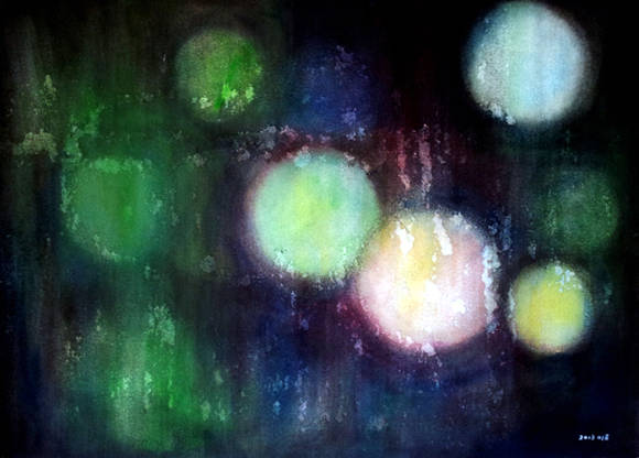 ▲김태권, '레이니 나이트(Rainy Night)'. 종이에 채색, 55 x 76cm. 2013.