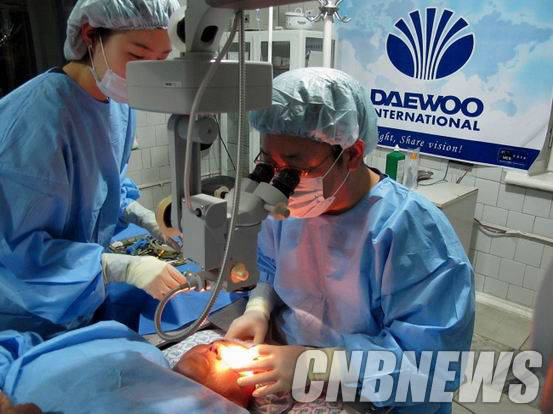 ▲‘대우’ 마크가 선명한 대우인터내셔널의 2014년 국제봉사활동 모습. 대우인터는 국제실명구호단체 비전케어와 함께 우즈베키스탄 페르가나 지역에서 의료봉사활동을 펼쳤다. (사진=대우인터내셔널)