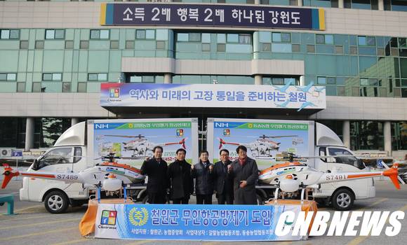 강원도의 대표적 벼 재배 지역인 철원군이 무인 항공방제를 추진한다. 군은 그동안 지리적으로 특수한 상황 때문에 무인 항공방제 운영에 어려움이 있었으나 최근 사업비 4억 100만 원을 투입해 트랜스폰더를 장착한 무인 항공방제기를 갈말농협(조합장 이태식)과 동송농협(조합장 진용화)에 각각 1대씩을 지원함으로써 무인 항공방제의 길을 열게 됐다고 15일 밝혔다. 이현종 철원군수는 "무인 항공방제를 통해 늘어나는 농촌의 고령화 및 부녀화로 발생되는 방제인력 부족을 해소하고 기후변화에 따른 적기 병충해 방제를 통해 급변하는 쌀 시장에 대응할 수 있는 고품질 쌀 생산으로 한층 더 철원 쌀의 경쟁력을 강화시키겠다 "고 말했다.