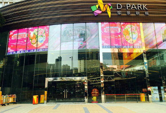▲홍콩 디파크 쇼핑몰 정문. 김지희 작가의 작품 이미지가 설치됐다.