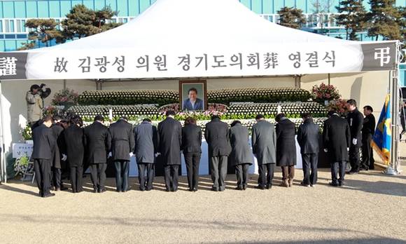 영결식이 끝나고 운구 행렬은 고인이 생전에 몸담고 의정활동을 한 도의회 보건복지위원회와 본회의장을 들른 뒤 경기도 광주시 남한산성면 선영에서 영면에 들었다.