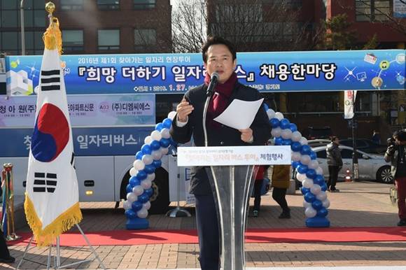 남경필 경기도지사는 27일 오후 찾아가는 일자리버스 투어 체험행사에 참석해 일자리버스 출범 5주년과 증차운행을 축하하고 구직자들을 격려했다.