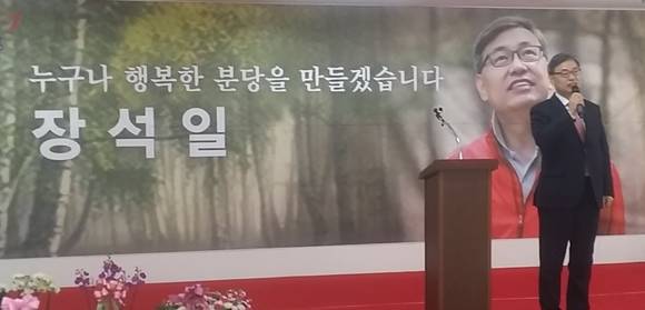 ▲새누리당 분당갑지역 장석일 예비후보가 선거사무소 개소식을 갖고 포부를 밝히고 있다 (사진=오익호 기자)
