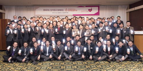 ‘라이팅칠드런’ 캠페인은 전기시설이 없는 저개발국가 아동들에게 태양광 랜턴을 전달해 야간 학습을 돕는 밀알복지재단의 글로벌 에너지 나눔 활동이다. 이날 롯데카드 임직원은 태양광 랜턴 200세트를 직접 조립해 밀알복지재단에 전달했다.