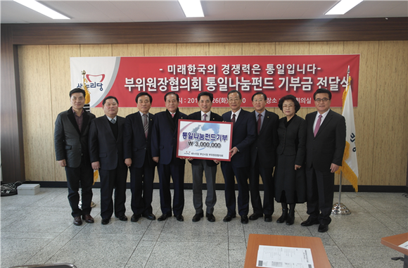 부산시당 박민식 위원장과 배덕광 수석부위원장 및 부위원장협의회 일동은 26일 통일나눔펀드 기부금 전달식을 갖고, 향후 시당 차원에서 통일준비사업에 적극 노력하기로 했다.