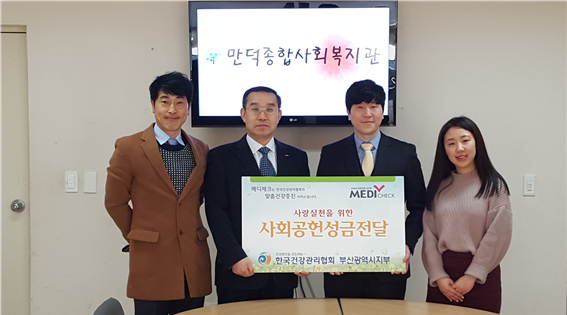 한국건강관리협회 부산검진센터(본부장 조승진)는 설 명절을 맞아 사회공헌사업의 일환으로 최근 동래구종합사회복지관과 만덕종합사회복지관에 각각 100만원을 기탁했다. (사진제공=부산 건협)