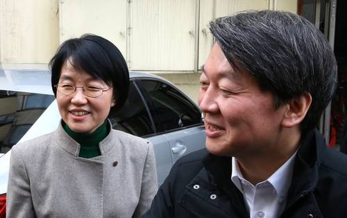 ▲국민의당 안철수 공동대표와 박선숙 사무총장이 5일 오전 설맞이 전업주부 현장간담회를 하기 위해 서울 원효로의 한 아파트에 도착한 뒤 주민들과 인사하고 있다. (사진=연합뉴스)