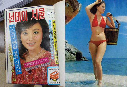 ▲1979년 ‘선데이 서울’ 표지 모델로 등장한 서미경씨(좌). 당시 비키니 차림의 모습(우).