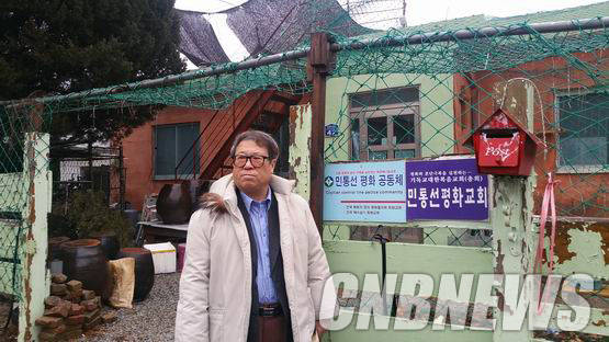 ▲우리나라 최북단 교회로 알려진 ‘민통선평화교회’의 이적 목사. 유사시에 대비해 교회 지붕이 위장막으로 덮여있다. (사진=도기천 기자)