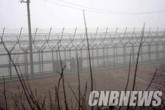 ▲개성공단 철수로 남북 간 긴장이 고조된 지난 12일 오후, 비무장지대 남방한계선을 군인들이 지키고 있다. 철책 너머가 임진강이고 강을 건너면 개성공단이다. 이슬비가 물안개를 만들어 강 건너편이 보이지 않았다. (사진=도기천 기자)
