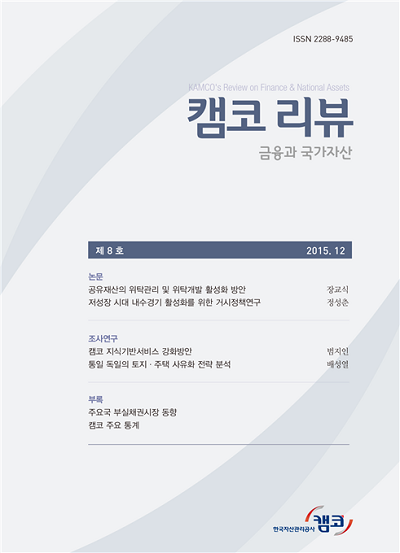 이번 호에는 지방재정의 확충을 위한 공유재산의 위탁관리 및 위탁개발 활성화 방안, 저성장 시대 내수경기 활성화를 위한 거시정책연구 논문과 통일 독일의 토지ㆍ주택 사유화 전략 조사연구보고서가 수록되어 있다.