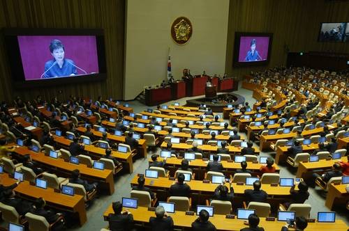 ▲박근혜 대통령이 16일 오전 국회 본회의에서 북한의 4차 핵실험 및 장거리 미사일 발사로 인한 안보위기 등과 관련해 '국정에 관한 국회 연설'을 하고 있다. (사진=연합뉴스)