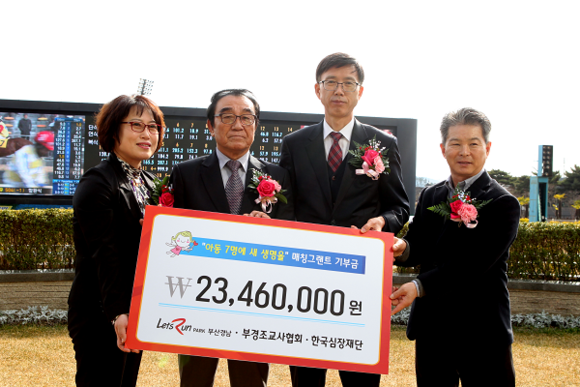 렛츠런파크 부산경남(본부장 고중환)은 최근 관람대 앞 시상대에서 2015년도에 적립한 '매칭그랜트 기부사업'의 기부금 2346만원을 한국심장재단에 전달했다고 17일 밝혔다.