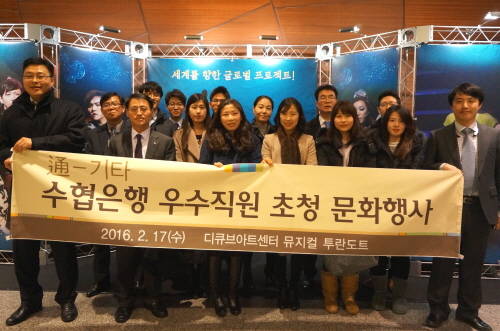 수협은행은 지난 17일 서울 구로구 디큐브아트센터에서 지난해 우수한 실적을 거둔 영업점 직원들을 대상으로 공연관람 문화행사를 가졌다고 18일 밝혔다.