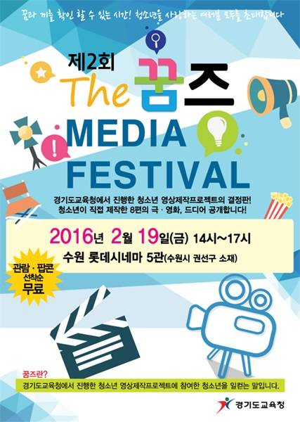 경기도교육청이 오는 19일 오후 2시 수원역 롯데시네마에서 제2회 꿈즈 미디어 페스티벌을 개최한다.