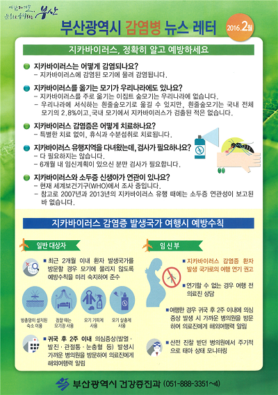 2월에는 최근 이슈가 되고 있는 지카바이러스에 대한 정보와 감염병 발생국가 여행 시 예방수칙에 관한 내용을 담고 있다.