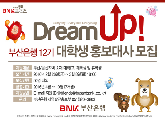 BNK금융그룹(회장 성세환) 부산은행이 대학생 홍보대사인 '제12기 BNK 프렌즈'를 모집한다.