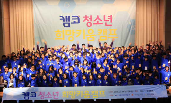 한국자산관리공사(캠코, 사장 홍영만)는 24일부터 26일까지 2박3일간 충남 아산시 소재 캠코인재개발원에서 초·중학생 120여명과 직원 및 대학생 자원봉사자 30여명의 멘토 등이 참석한 가운데 '캠코 청소년 희망키움 캠프'를 개최한다.