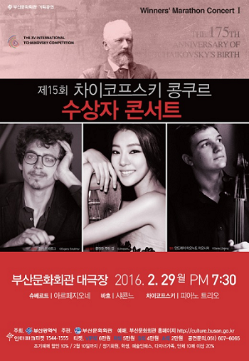 부산문화회관(관장 이승호)은 2월 29일 저녁 7시 30분 문화회관 대극장에서 '제15회 차이코프스키 콩쿠르 수상자 콘서트'를 개최한다.