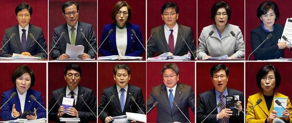 ▲더민주당이 지난해 연말 테러방지법을 새누리당과 합의처리키로 약속한 것이 빌미가 돼 지금의 국회 마비 사태를 불러 왔다는 지적이 일고 있다. 7일째 필리버스터(무제한 토론)를 이어가고 있는 야당 의원들. (왼쪽 상단부터 시계방향으로) 더민주당 김광진 의원, 국민의당 문병호 의원, 더민주당 은수미 의원, 정의당 박원석 의원, 더민주당 유승희 의원, 더민주당 최민희 의원, 정의당 김제남 의원, 더민주당 신경민 의원, 더민주당 강기정 의원, 더민주당 김경협 의원, 정의당 서기호 의원, 더민주당 김현 의원. (사진=연합뉴스)