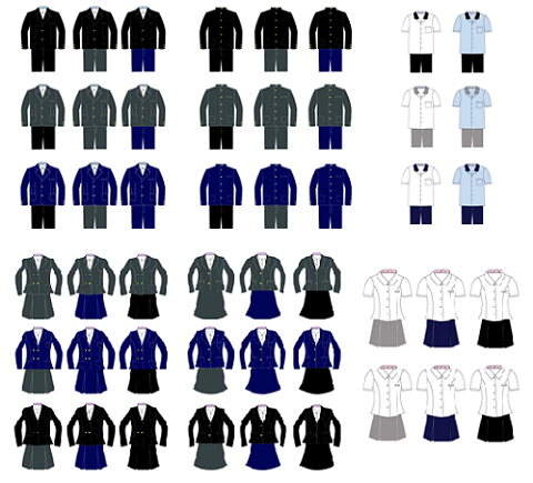 시교육청은 이러한 점을 감안하여 부산시내 전체 중·고등학교에서 가장 많이 입고 있는 남청색, 회색, 검정색 등 3가지 색상과 디자인을 중심으로 남·녀 동·하복 각각 2종씩 개발했다. 색상을 조합할 경우 총 54종의 다양한 교복이 가능하다.