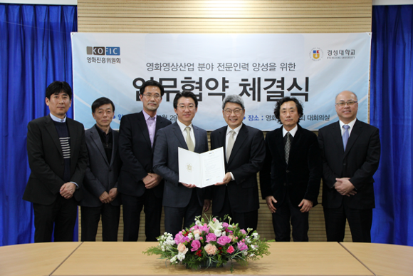 영화진흥위원회(위원장 김세훈)는 29일 오후 3시 위원회 14층 대회의실에서 경성대학교(총장 송수건)와 영화·영상산업 분야 창의 인재 양성과 공동 콘텐츠 발굴 및 기술개발 등 상호 협력을 위한 업무협약을 체결했다.